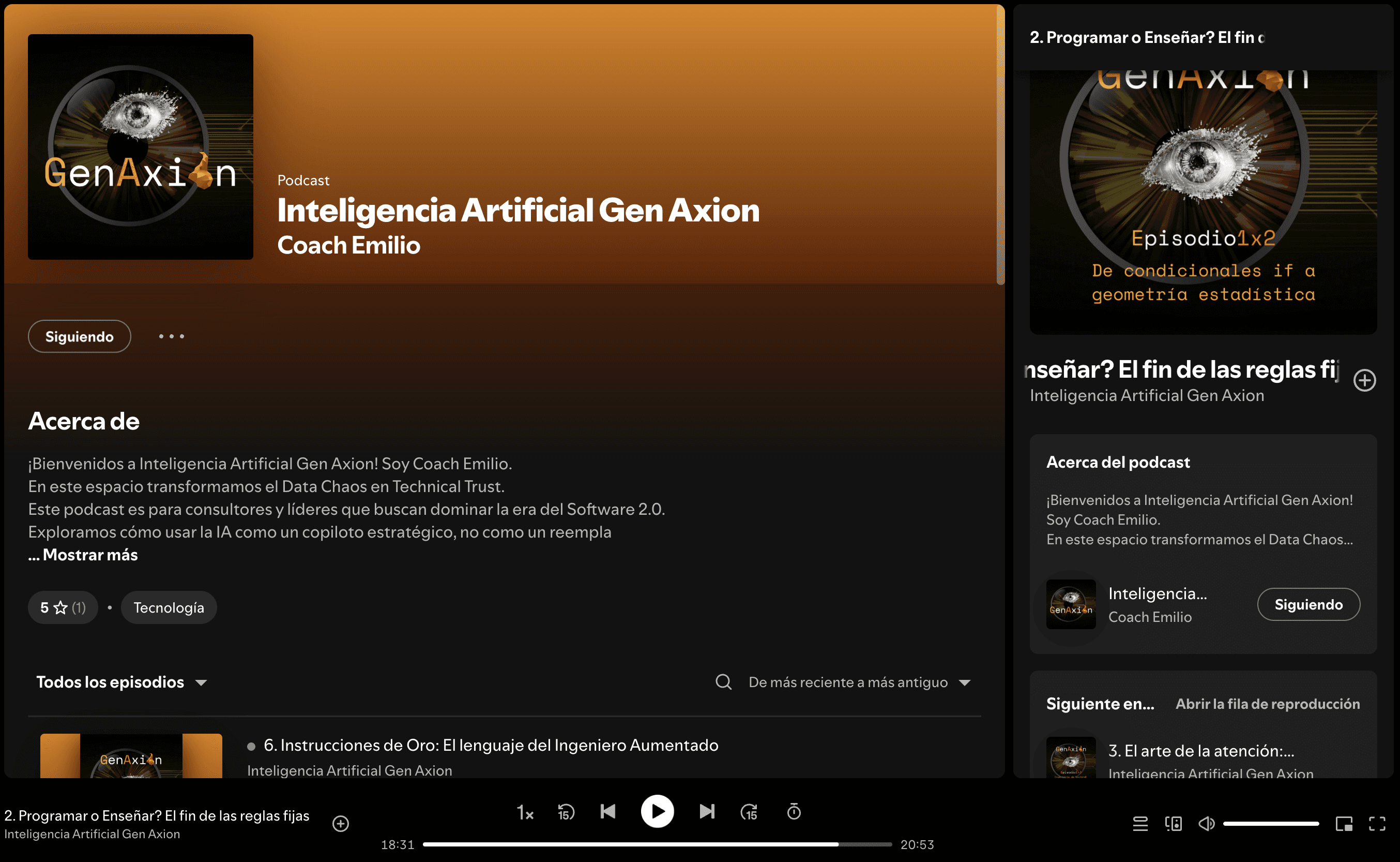 GenAxion es un podcast enfocado en los fundamentos de Inteligencia Artificial Generativa, diseñado especialmente para programadores que buscan comprender la tecnología desde sus bases.