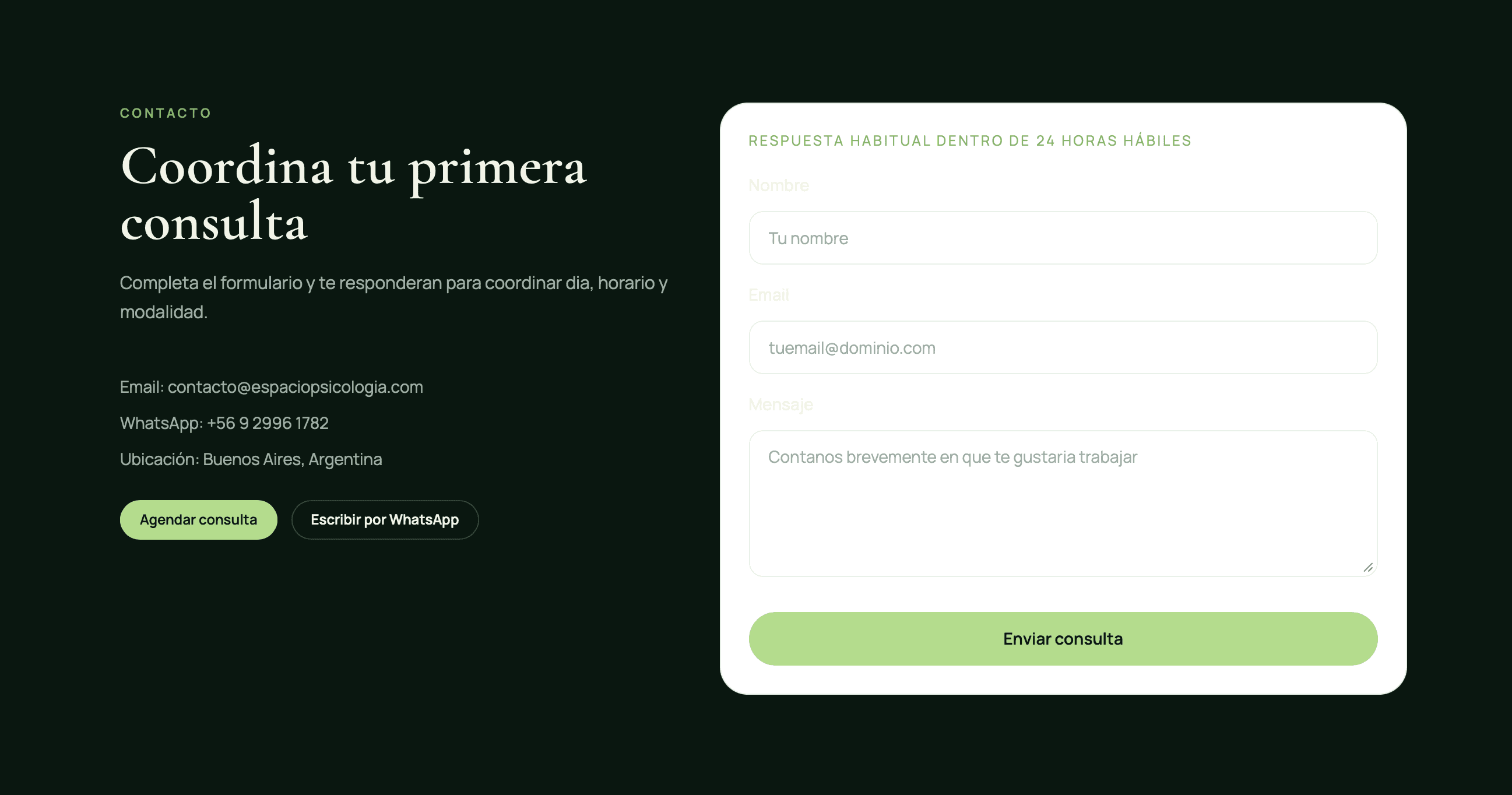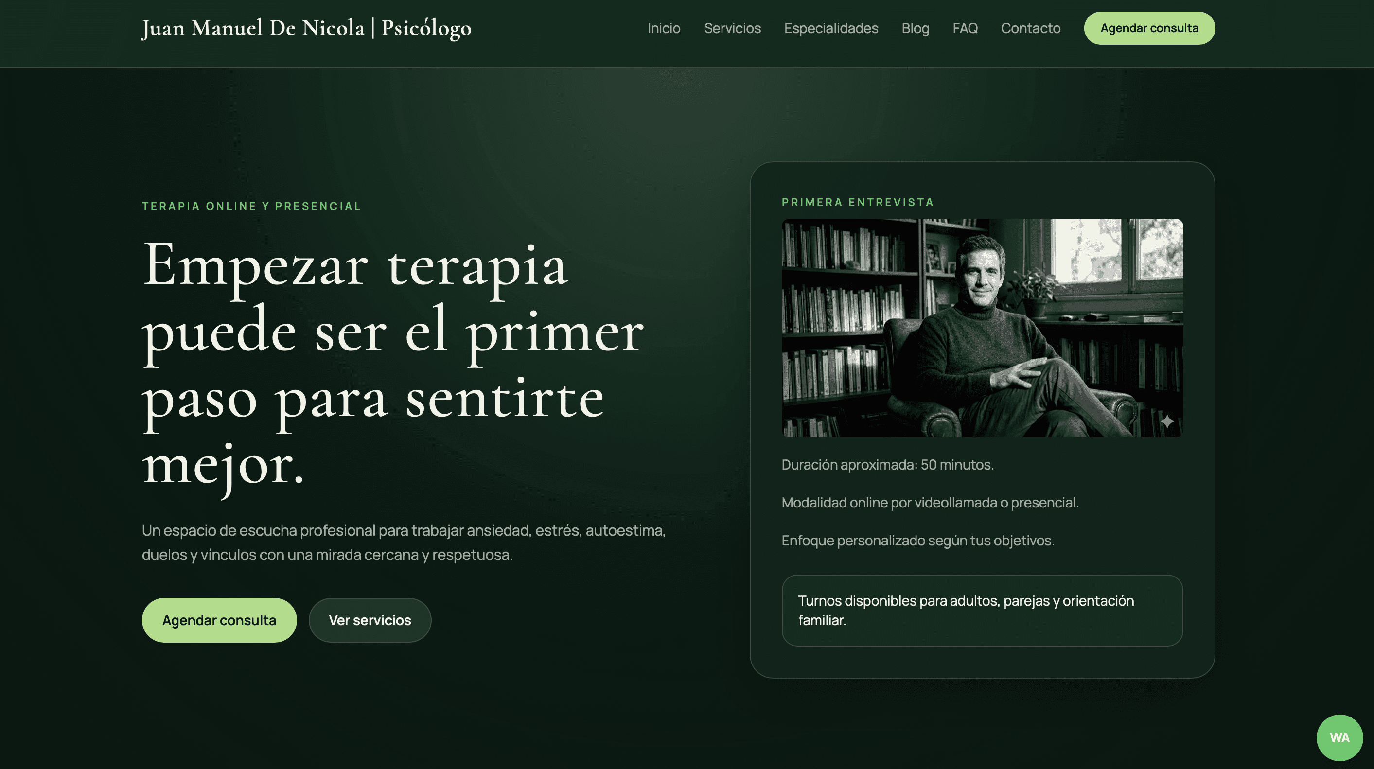 El resultado es una web que no solo funciona como carta de presentación, sino como una herramienta activa para generar consultas, posicionar la marca personal del psicólogo y acompañar el crecimiento de su práctica profesional.